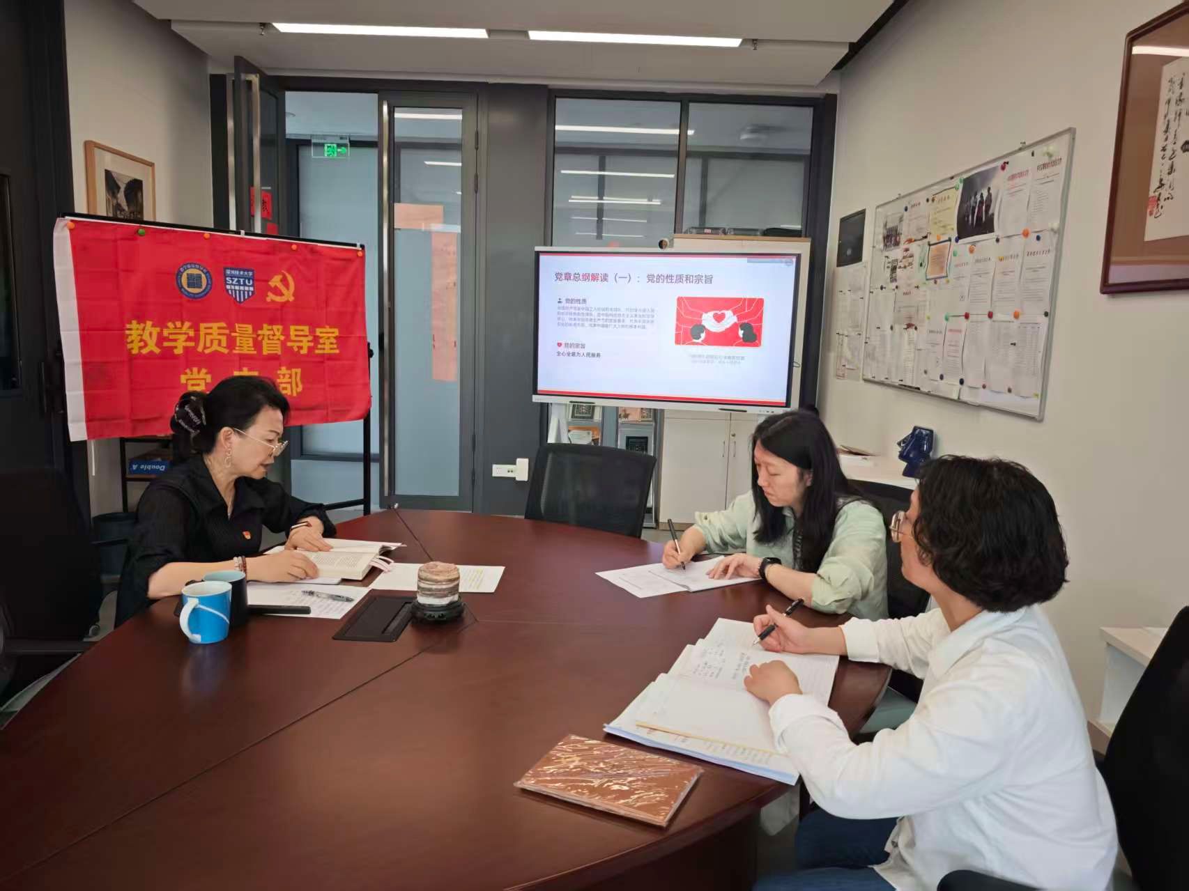 2026年3月27日下午,教学质量督导室党支部阎书记给全体党员上了一堂“《中国共产党章程》解读”的党课。阎书记从党的历史沿革、党章的总纲解读、党员义务与权利、组织制度、党的纪律、二十大党章修订要点和学习党章,践行使命七大方面进行了讲解。重点给大家解读了中国共产党以马克思列宁主义、毛泽东思想、邓小平理论、“三个代表”重要思想、科学发展观、习近平新时代中国特色社会思想作为自己的行动指南,及其发展规律和发展历程。